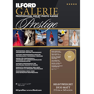 GALERIE Prestige Heavyweight Matt is a double-sided paper with a smooth bright white finish. The 310gsm product is a true heavyweight and with 99.9% opacity it is perfect for professional quality photo albums, portfolios and display prints.